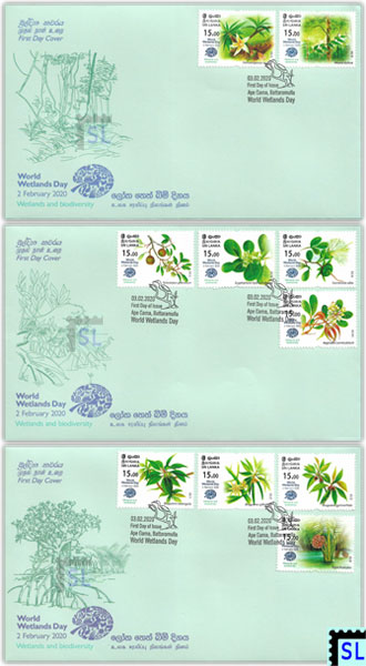 2020 Sri Lanka stamps first day covers of world wetlands days. A complete series.