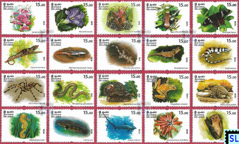 2020 Sri Lanka stamps full sheets of wild species threatened by trade. A complete series.