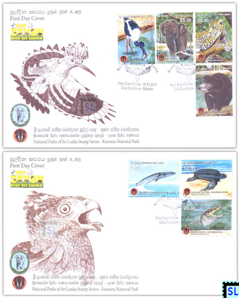 2016 Sri Lanka first day covers of Kumana National Park.