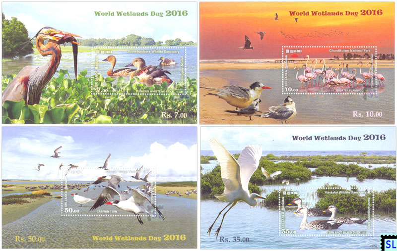 Sri Lanka miniature sheets of world wetland day 2016. 4 miniature sheets, a complete series.