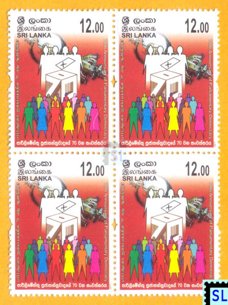 2017 Sri Lanka stamps of 70th anniversary of parliamentary democracy. MNH block of 4.
