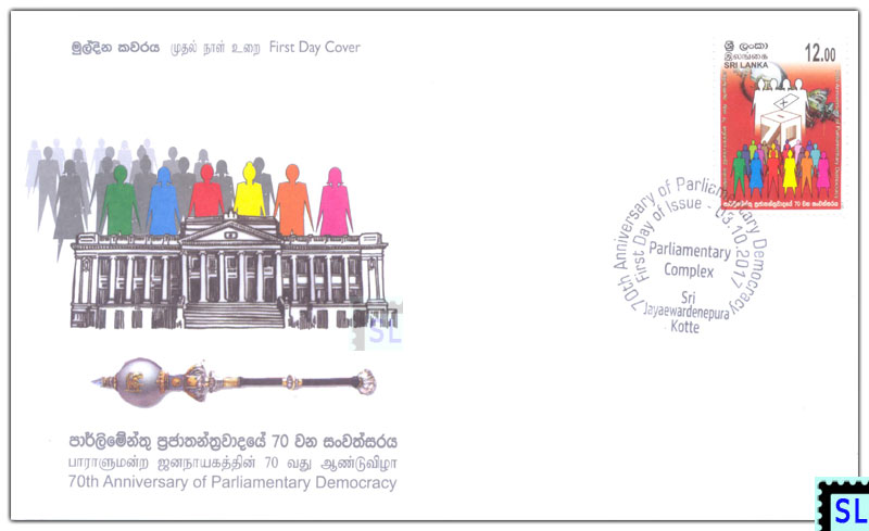 2017 Sri Lanka first day cover of 70th anniversary of parliamentary democracy.
