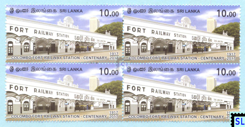 2017 Sri Lanka stamps of Colombo Fort railway station centenary. MNH block of 4.