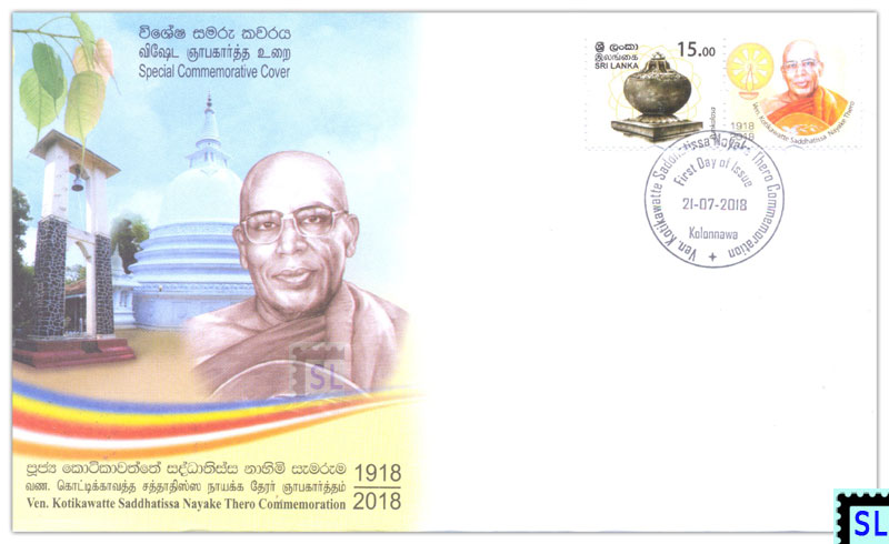 2018 stamps special commemorative cover of Ven. Kotikawatte Saddhatissa thero commemoration.