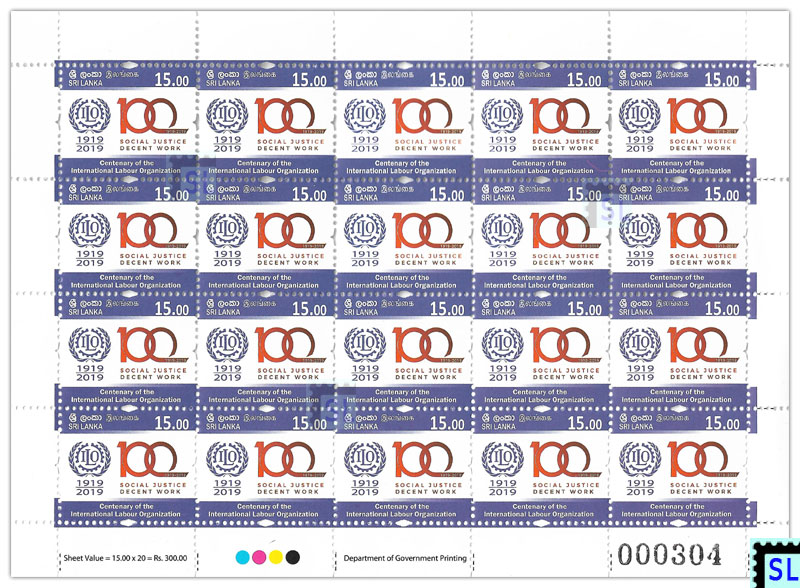 2019 Sri Lanka stamp full sheet of the international labour organization.