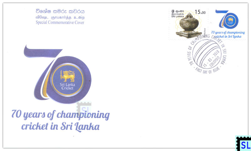 2018 Sri Lanka stamps special commemorative cover of 70 years of championing cricket.