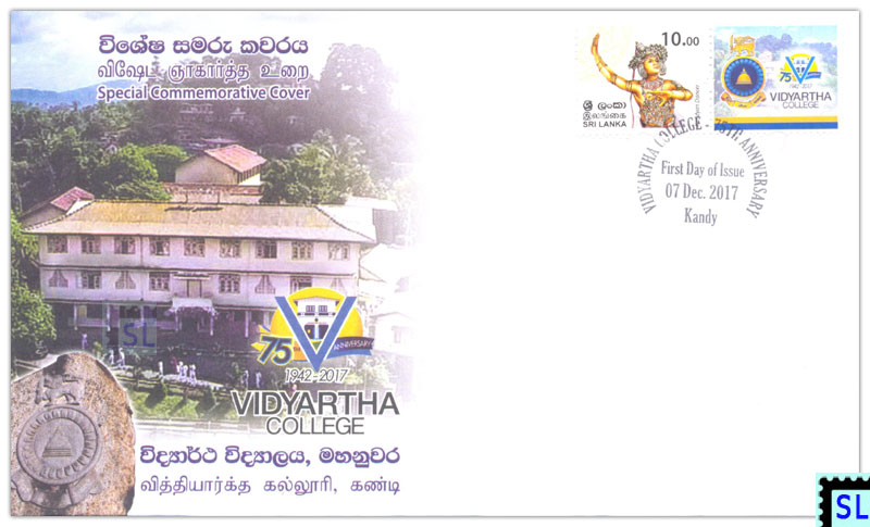 2017 Sri Lanka stamps special commemorative cover of Vidyartha College, Kandy, 75 years.