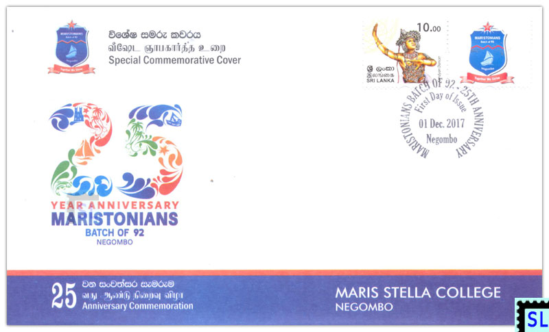2017 Sri Lanka stamps special commemorative cover of Maristonians, 25th anniversary.