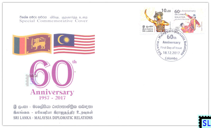 2017 Sri Lanka stamps special commemorative cover of Malaysia diplomatic relations, 60th anniversary.