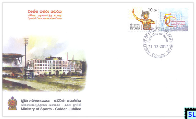 2017 Sri Lanka stamps special commemorative cover of ministry of sports, golden jubilee.