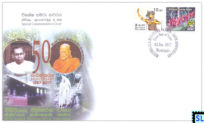2017 Sri Lanka stamps special commemorative cover of Mitirigala Nissarana Vanaya, 50th anniversary.