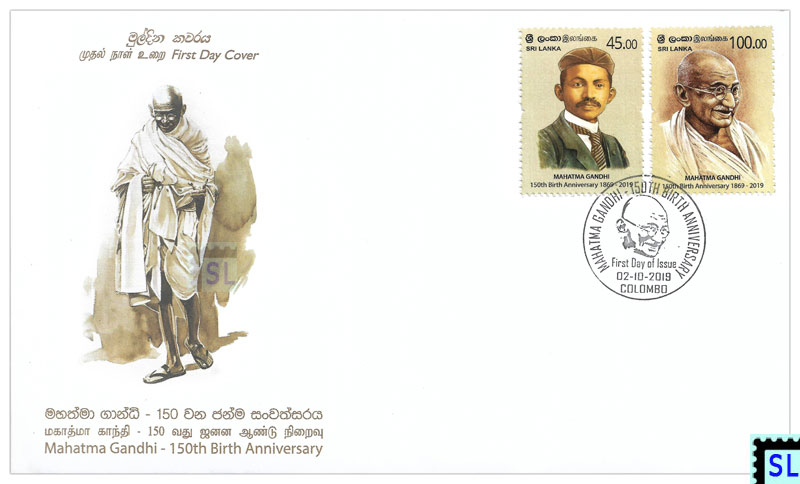 2019 Sri Lanka stamps first day cover of Mahatma Gandhi.