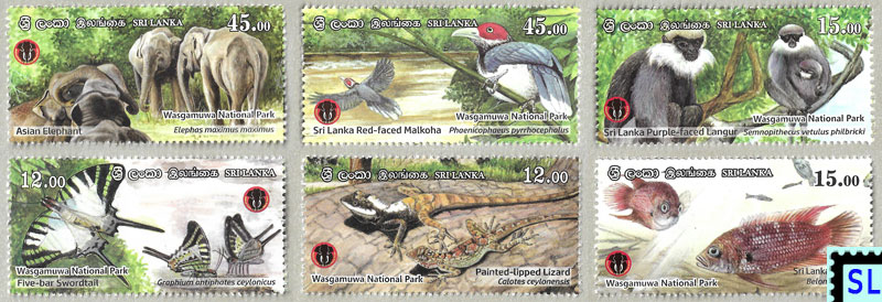 2019 Sri Lanka stamps of Wasgamuwa national park. MNH 6 stamps, a complete series.