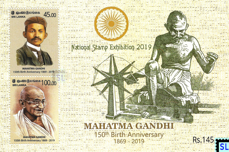 2019 Sri Lanka national stamps exhibition miniature sheet of Mahatma Gandhi.