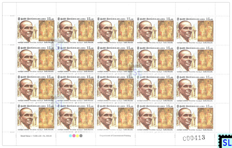 2019 Sri Lanka stamp full sheet of Soilis Mendis.