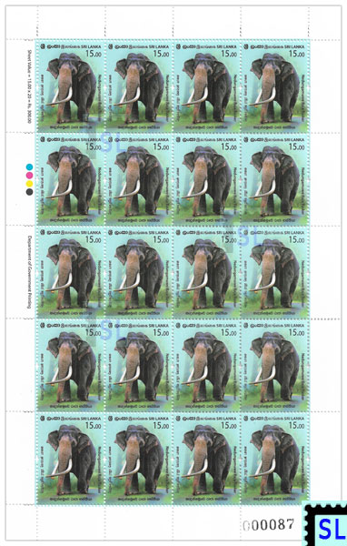 2019 Sri Lanka stamp full sheet of Nedungamuwe Raja tusker.