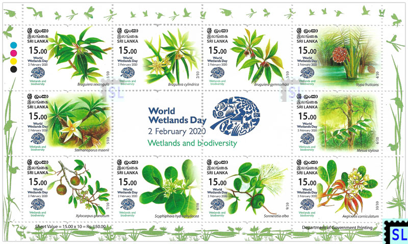 2020 Sri Lanka stamps full sheets of world wetlands days. A complete series.